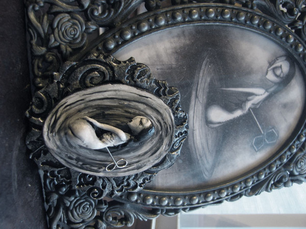 this is amazing. awesome tonal range (i sound like an art teacher) while at the same time being done in scritchy lines... the shading on her face and around the stitching or scarring is incredible. great work!