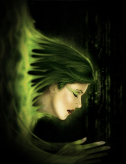 I found this photo at gettyone.com and I messed around with it and messed with the face and the colors and hair..and I added some watery kind of effects..original photo here, [link]