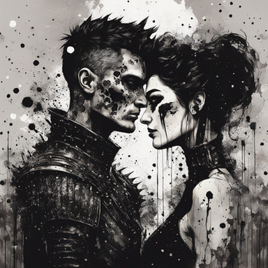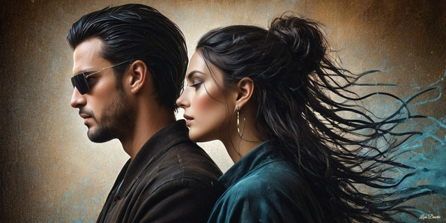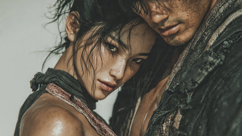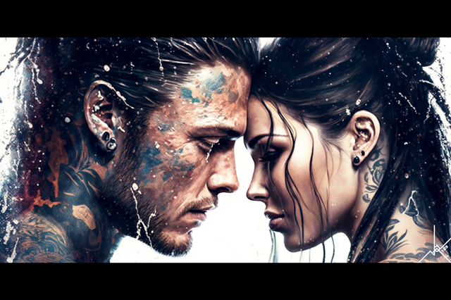 #bold #calligraphy #captivating #characters #contrast #couple #digitalart #dramatic #drops #duo #emotion #expression #gaze #intensity #intimacy #paint #portrait #rain #realism #script #stare #strokes #vibrant #water #wet #art #detail #strugglebondage