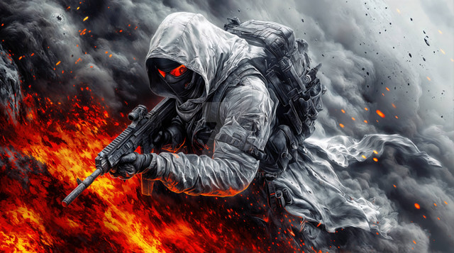 #ai #battlefield #battlezone #design #digitalart #glowingeyes #modernwarfare #sci #soldier #survivalist #warart #actionart #crimsonflames #darkatmosphere #warfighter #actionscene #apocalypticart #dramaticart #militaryart #combatart #intenseart #tacticalgear #fimilitary #futuristicmilitary #tacticalart #fieryaura #militaryhero #explosivevibes #midjourney #warriorinbattle