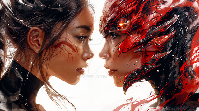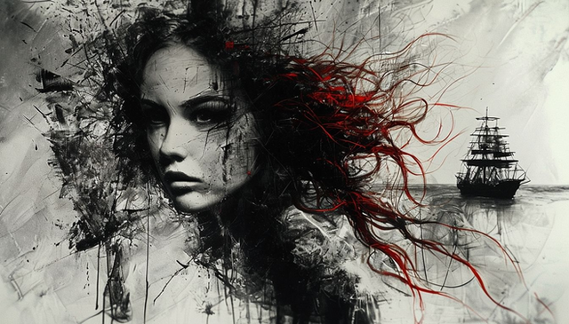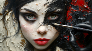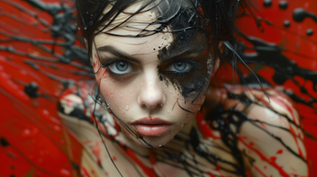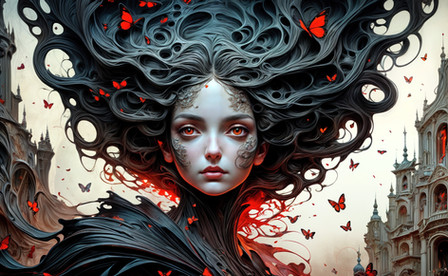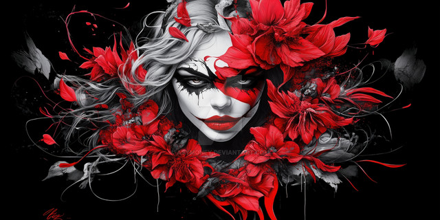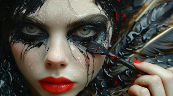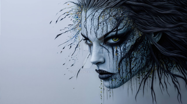 #ai #beauty #black #conceptual #cracked #crows #dark #design #digital #digitalart #dramatic #emotional #face #fantasy #feathers #feminine #fineart #gothic #hair #illustration #monochrome #mystical #portrait #red #surreal #texture #white #woman #art #midjourney