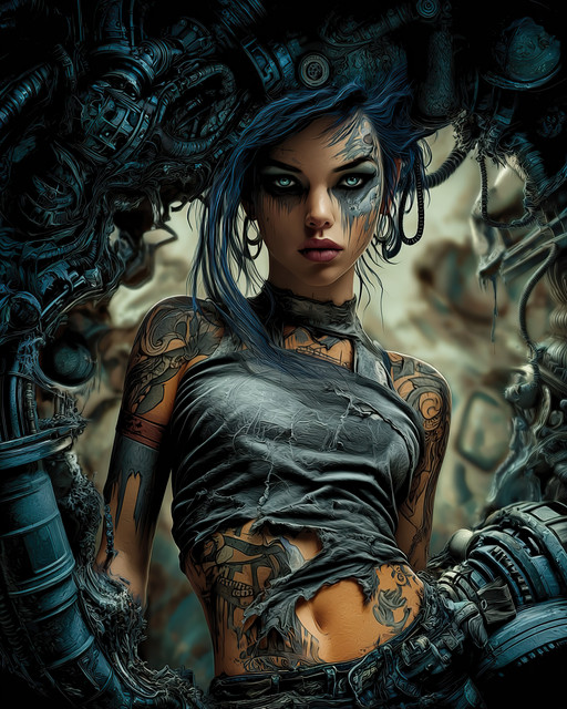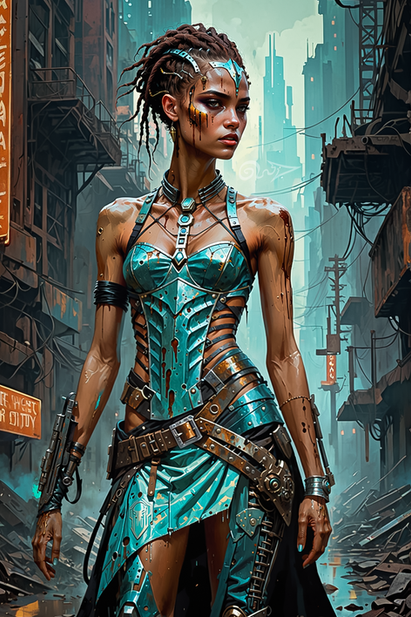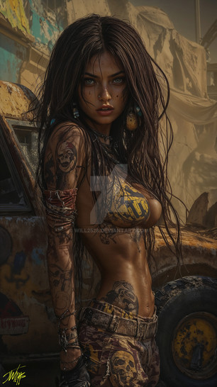 #ai #cyberpunk #design #dieselpunk #digitalart #femalehero #grungestyle #industrialdesign #postapocalyptic #scavenger #scrapper #steampunk #survivalist #desertpunk #dystopianfuture #apocalypticfashion #wastelandwarrior #ruggedbeauty #junkyardqueen #futuristicoutlaw #midjourney #rebelliousspirit #techsurvivor #fierceheroine #futuristicgunslinger #rusticaesthetic #wastelandfighter #mechanicalgear #fieryweapons #scavengerqueen
