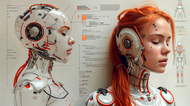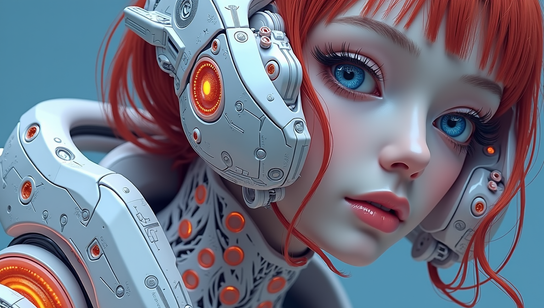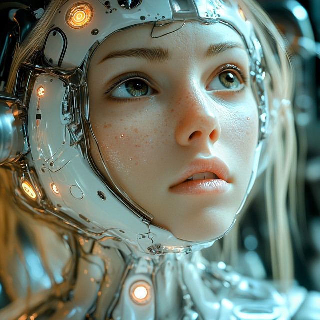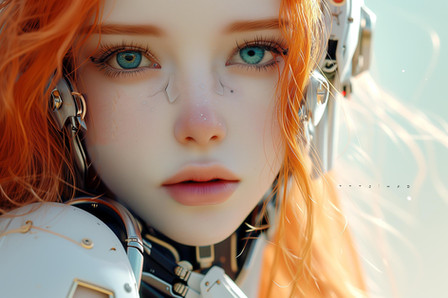 #ai #android #artificial #awe #biotech #circuitry #complex #connection #contemplative #cyborg #detailed #ethereal #futuristic #gaze #humanoid #hybrid #ingenious #innovation #intense #machine #mechanical #portrait #redhead #robotics #science #synthesis #technology #visionary #wonder #midjourney