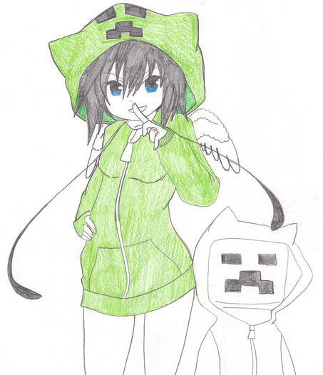 Me (To CreeperGirl): CUPA YOU SON OF A- actually, you look kind of cute. You're all acting cute, dressed as a dog, you're actually kinda cute! You just wanted to play, didn't you? (NAH! Just playing! I actually stare at her in a creepy way)