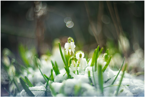 Very pretty. I like how the snowdrops dominate the composition but the tree in the background is still visible: it works a lot better than just a straight shot of only snowdrops. Nice work.