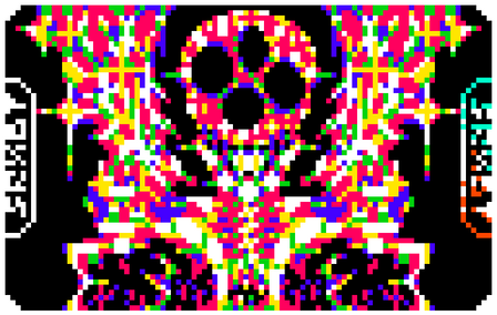 The original ZX Spectrum has a screen resolution of 256×192 pixels. Colour information is overlaid onto this as a grid of 8×8 pixel regions known as attribute blocks; within each attribute block, only two colours may be used out of a palette of 8 (black, blue, red, magenta, green, cyan, yellow and white). Additionally, the entire attribute block may be designated as 'bright', resulting in a total of 15 possible colours (because both bright and dark black is the same color #000000).