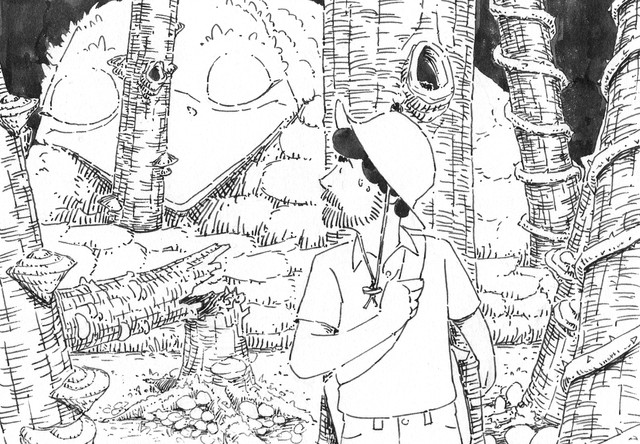Very interesting composition, like your way of using ink. That guardian of the forest is really huge! nice done