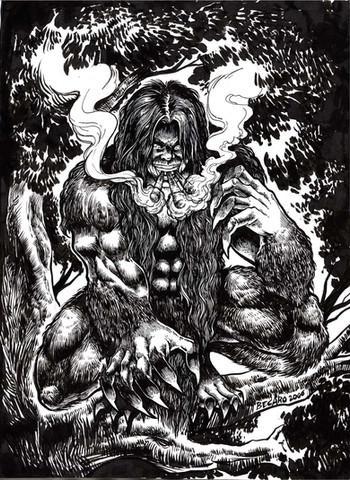 Haring Ugdalu-ob, one of my OCs in En. He's the datu or king of all kapre. After being defeated in the Bakunawan wars in the En realm, He and his entire clan seek refuge in Duta(human world). There, they secretly residing in the forest away from man for hundreds of years. Haring(king) Ugdalu-ob, is the most strongest of them all Kapre creatures, they believe he possesses the strength of a thousand mountains and thunder. His source of his power is from his big ass Tabako(tobacco), in other words he needs to get high before smashing you to bits.hehehe...but normally he's insanely strong.Legend says that there is a single strand of white hair on the back of his head, (which i think its impossible to spot
