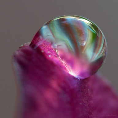 Oh, gosh and wow. I think the reflections really add to the entire picture, your kinda seeing the entire world through a different perspective within the water droplets. Really good photo!