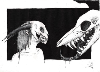 I like the strokes of black and the font texture in the background. An unusial concept, but look so amazing. Is it a dog with the sheep scull?