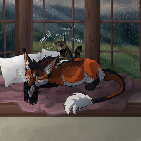 She is not well socialized yet. Kinda feral tbh. When she's nervous she wraps her tail around herself!