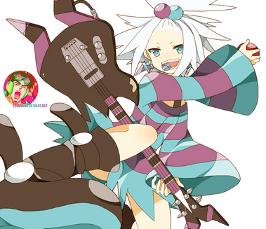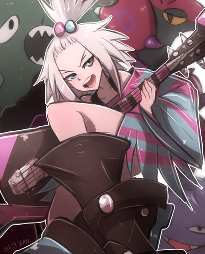 Oh wow, Roxie is my favourite Unova gym leader, and this is an awesome pic of her. I like how she's chewing her guitar pluck (or whatever it's proper name is).