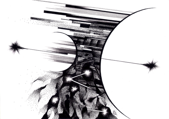 it looks like an broken egg and its current lines as sign of civilization holds tight a human on the left side of the image... *-*