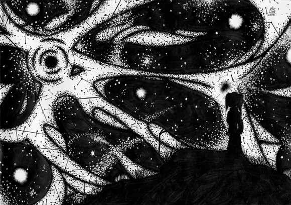 I think of an eclipse that just gets darker and darker until that shows in the sky and the lights on the horizon march toward something unknown. Yea, I still really love what you make.