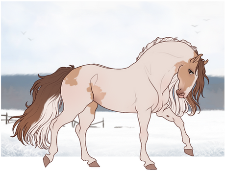 **Genotype:** Sprinkled Veil Cremello Overo Birdcatcher spots