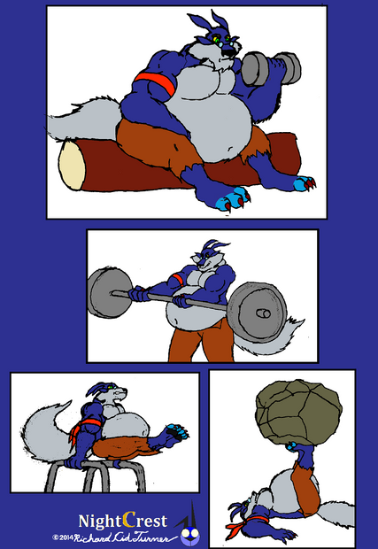 Well thats definitely *one* way to get pumped up. ^^ That belt o' his must be awfully tight to constrain all that bloat!