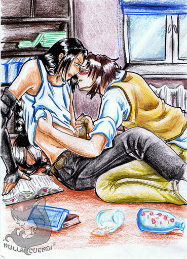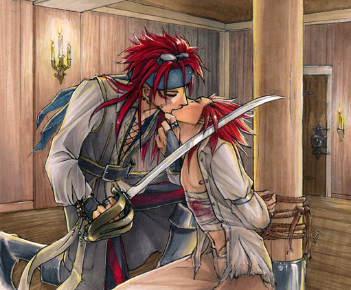 so I saw the lineart of this super fuckin' sexy gem on 's computer when i was at her sexy-abode-of-ARR-glory this past summer and was accompanying me with the raiding all her artz folders AND I JUST HAD TO COLOUR IT, I HAD NO CHOICE. AKFLDJALSDFJALSDFK IT WAS TOO PERFECT, EVEN THE MSN-MADE-SKETCH WAS SO FREAKING SEXY, BLAAAAAAAAARHG. i can't remember the last time i wanted to colour something so badly. SO ERIN AWESOMELY FIXED UP THE LINES AND SENT IT TO ME SO I COULD PRINT IT OUT AND GO CRAZY WITH IT, NNGH <333