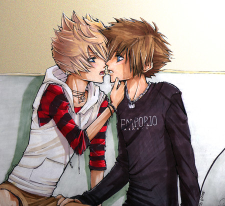 COLLAB!!WHAT ARE THEY DOING? WELL, THE SITUATION THAT MY GAY BRAIN BARFED UP IS THAT AXEL WAS FORCED TO STAY IN ON HALLOWEEN CUZ HE'S HOUSESITTING AND SO RENO AND ROXAS CAME OVER TO KEEP HIM ENTERTAINED AND HAND OUT CANDY TO THE CUTE LITTLE KIDDIES WITH HIM, AND THEN THE BOOZE WAS BUSTED OUT ALONG THE WAY, AND THEN A GAME OF CIRCLE OF DEATH, AND THEN AXEL KNOCKED OVER THE CARDS CUZ HE'S A FAIL AND SOMEWHERE ALONG THE WAY ROXAS ATE ALL THE GOOD CANDY FROM THE JACK-O-LANTERN BOWL, AND SO THEY EVENTUALLY ENDED UP HANDING OUT KETCHUP AND MUSTARD PACKETS FROM OLD MCDONALDS TAKE-OUT BAGS THAT THEY FOUND IN THE FRIDGE.