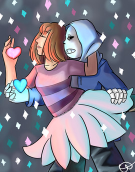 hehee!! thanks X3. yeah Sans would want to pick up Frisk but he's too small and she was thinking the same thing so she picked him up!X3