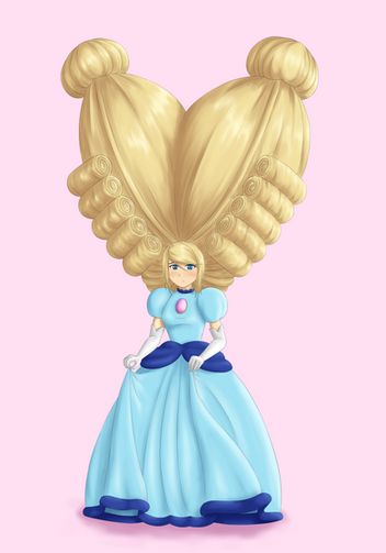 A long while ago I made this for ManoftheNorth93 while we were discussing an idea for a musuem with various versions of Samus Aran all with different makeovers, including this one of her with a rococo styled makeover in a big blue dress with a big hairstyle! I found it again recently and decided to upload it with ManoftheNorth93's permission. I hope you all enjoy the picture!Related content
