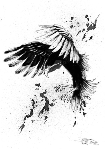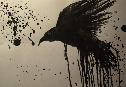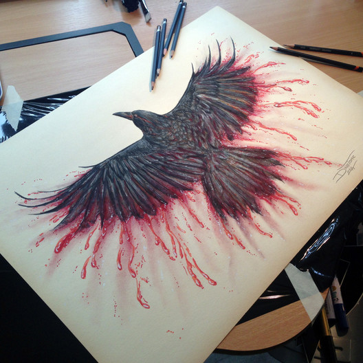 Crow Color Pencil DrawingAs you can see i went with the blood themed craw drawing. i agree with with a lot of the comments , that fire is very used up - and also it could resemble the hunger games. Thats why i took blood them.