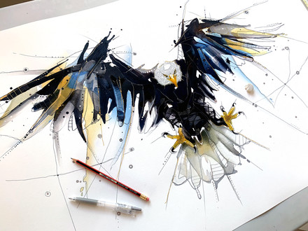 I use water based and pastel pencils from Derwent to do this drawing