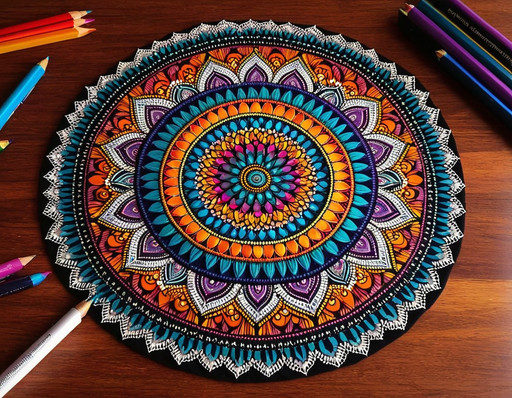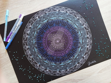 The central circle surrounded by the others make a really good effect, very beautiful! Every single one of your mandalas are an unique work of art Please, keep on doing that amazing art you do!