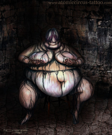 People with anorexia sometimes go for months on nothing... I'm good friends with a girl who ate nothing until she was told that she had two weeks left to live. I love the painting, but I don't feel you understand the disorder itself and the causes of it. I feel the same way about the obesity painting. Mental disorders and addictions cannot be easily explained, and not even the experts really understand them. Anorexia is not caused by 'small problems'. Some people would find that incredibly offensive. Anorexia is exceedingly rarely entirely based on wanting to look good for other people, and I still get incredibly angry when the media tries to paint it that way, or other people such as you base your opinions on myths. While recovery is possible, it is exceedingly hard for people with either disorder. Please remember that before saying more such ignorant things.