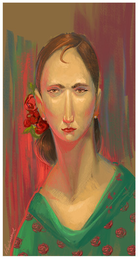 Wonderful! The muted colours are great, and I really like the way you've drawn her hair and scarf. Her expression is wonderfully done, too. The simple composition puts the focus nicely on the girl.