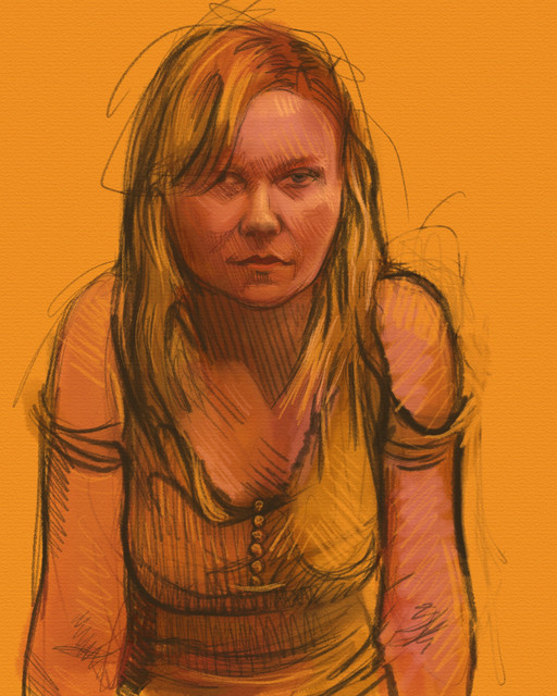 she was just sitting near us at drink and draw one night, liked her scarf so I drew her then coloured it up.