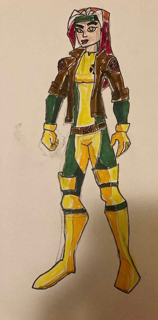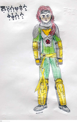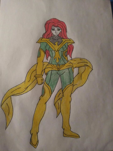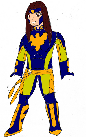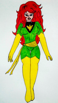 The design of Marvel Girl is mostly based off of her late 60s-early 70s costume, along with a couple aspects of the 90s Phoenix costume. To make it stand out, I gave Jean the jacket her time-displaced counterpart wore in X-Men Blue. I also gave the proper Phoenix sash. She also got freckles and curly hair to make her cuter.