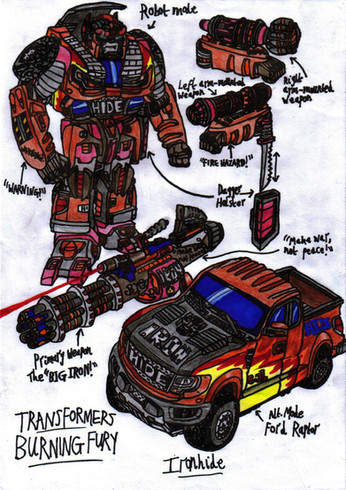 It took a while, but here's my favorite old timer: Ironhide, ready to kick some Deceptichops with his huge cannons! Beyondverse Ironhide's design was based on old concept art of Ironhide for Transformers Prime that never got the cut.Overview: Ironhide is one of the oldest and toughest Autobots, and has been on Optimus Prime's team for a long time. "They don't make them like they used to" is an apt description of Ironhide-he's yesterday's model, but he's built to last. He'll fight to the bitter end and take down more than his fair share of Decepticons in the process.