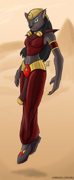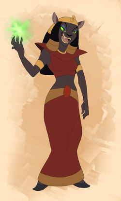 There was one episode where she sort of flew out of the sky in her realm and we got to see a bit though not much. I've never seen a model sheet for her so I'm not entirely sure what's going on down there. For shoes I gave her golden slippers rather than her black ones, I thought gold looked better. One thing I'm sure of though is that she doesn't have a tail (so like Bast from actual Egyptian mythology).