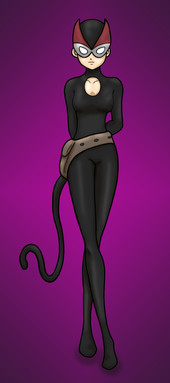 I like, in one way specifically. And no, It's nothing to do with how professional it looks. It has to do with the style itself. The way you shaded the black costume, it has a Kirby look to it; most notably your shading of the hood and ears. Next the pose, that exaggerated movie action pose. Special note on the left leg, with that leg foot twist as if to use it as a spring to push away.