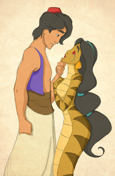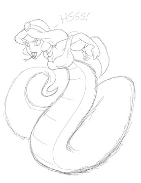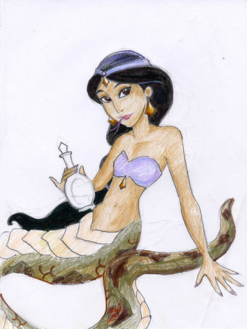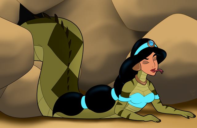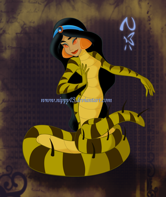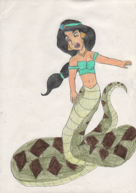 Another Halloween Monster Mash!? Why not!Conversations with ~marc1986 have reminded me of the animated Aladdin TV series and how great it was. There was an episode from the series where this happened, Mirage tricked Jasmine into using a potion or something and of course it changed her into a snake-woman. Though, come to think of it, it didn't phase Aladdin all that much, but by then I think he'd seen just about everything happen...