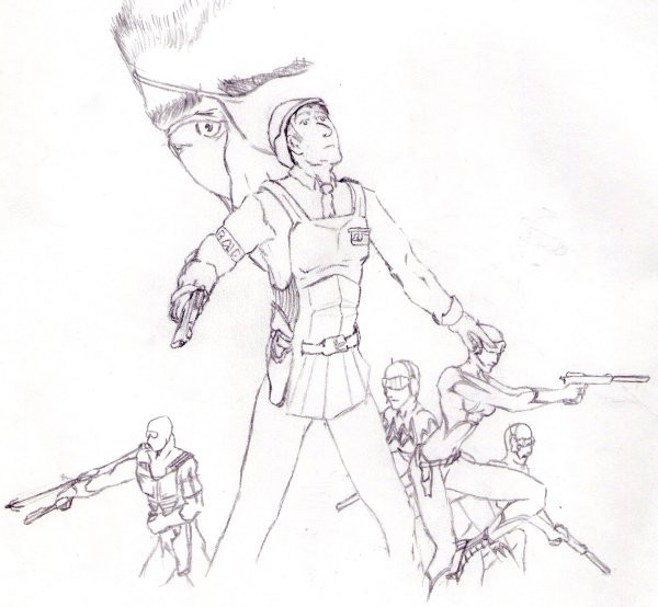 A poster for an AAR from an old CP2020 campaign. Johnny and his friends saved the Queen from the hands of MLA operatives and restored monarchy in Great Britain. No big deal.As for the characters on the poster.