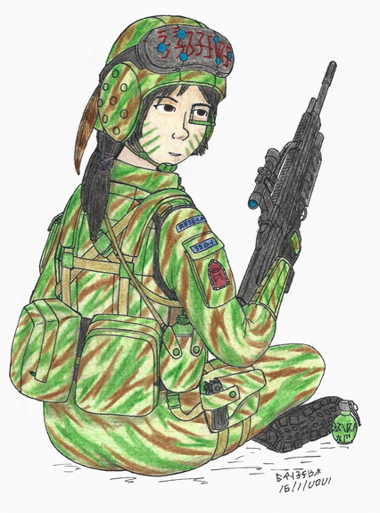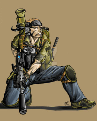 Lt Colonel Anemy Rothart protecting wounded, then, Major Davi Peres of the Brazilian 1st CAB (Commando Action Battalion) during joint US/Brasilian operation "Teal Brass Albatross" against Arasaka in South Africa in 2055. She was awarded the Silver Star and the Combat Cross FC by the US and Brasilian command respectively. Of course, both the awards and the operation itself will remain classified until 2105.Related content