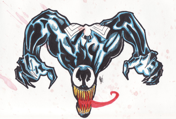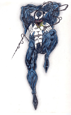 Did you color this with markers? Awesomeness... is too great... w00t! When I first saw this, I thought a reasonable title would be 'Venom: Massive Underbite'. I dunno why, might be because of his massive underbite.