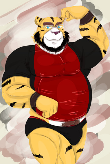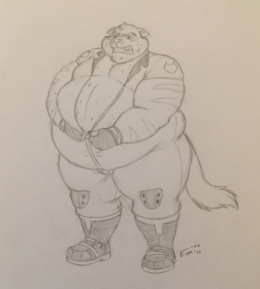 A head shot commission done of my OC Rai Cheeger by who is surprised at his sudden weight gain.Hmmm, I see things like this happening to him a lot more in the future.