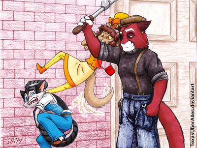 I requested a picture from of Rai Cheeger getting wedgied by one of his characters and this was the end result. Poor Rai, if it's not him getting inflated or fattened up, he's getting wedgied... actually I envy my Fursona, haha!Related content