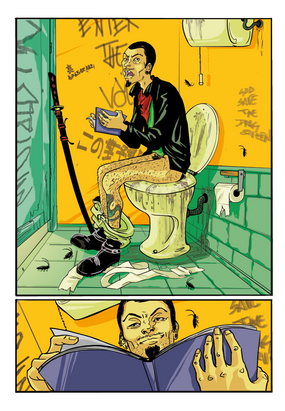 That'll sound funny but I love the perspective on this. You've improved a lot. Your character has more structure. And he has your tattoo.