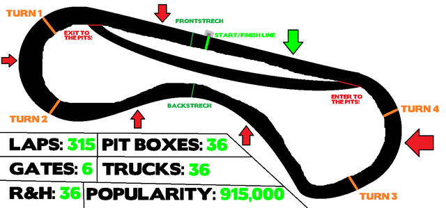 The road course has 34 pit stalls, each being approximately 13 meters (42 feet) in length.