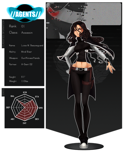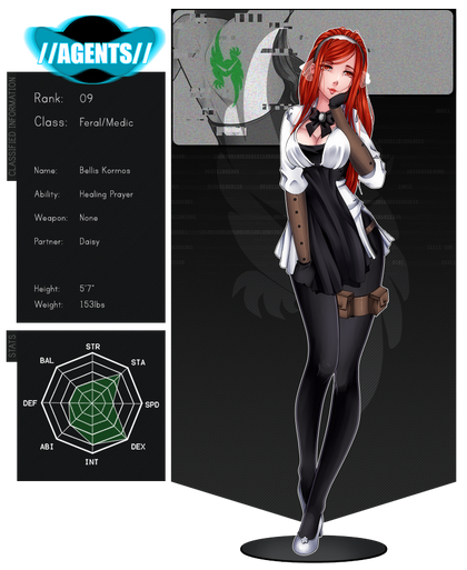 She wasn’t the easiest A-Gent of the gang; rude and offensive. Not willing to pay one bit of her ‘valuable’ attention to the pathetic souls that were her colleagues. Though as her master and partner Agent 94 passed after saving her life. . . her demur changed rather quickly. . . The event slowly forcing her to grow up and suck it up to become better and pay for the life that had been lost in exchange to gain hers back. Not that she ever asked for this.