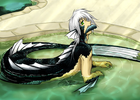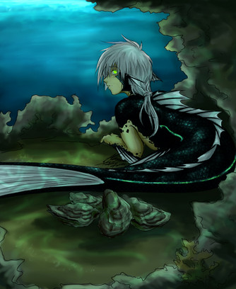 Mer's are an odd mix. Kind of like our platypus friend. They have a few characteristics of both.Β Different breeds carry young differently. (I intend on posting a worldwise species ref soon. ) some lay eggs, some don't. For the Caribbean mer, which is the breed Danny is of, happens to be a life berth species. I think I mentioned it on my anatomy sheet that gestation can last between 4 to 6 months depending on the species and the number the mother has to brood.