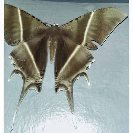 ¡Que suerte! Se ve como una polilla que se llama Dysdaemonia boreas que se asemeja a una hoja muerta. Yo nunca vi una cuando yo estaba en Mexico hace años. Es de una familia de lepidópteros que se llama Saturniidae que es de una familia muy grande y importante. Yo creo que tu polilla es más grande que la Polilla Luna (Actias luna) (una especie que yo vi una vez en la costa oeste de México). ¡Cuidado con mi español! Jajajaja ¡Buena suerte en buscar otra!