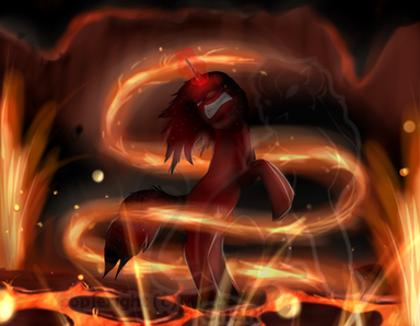 Holy... This is amazing! It's a perfect representation of my OC Pony, Pyro Feuer. Well, almost perfect. Mine has all hooves!