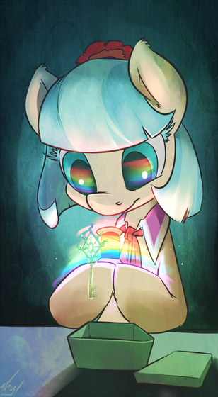 it kind looks like she is sucking the end of her hoof,im not sure if that was intentional or not but it makes it quite cute. :3
