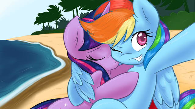 I don't know what's weirder...The idea that Twilight can't swim or the fact that Dash in this pic is taller than her, humanoid and has a bikini on.