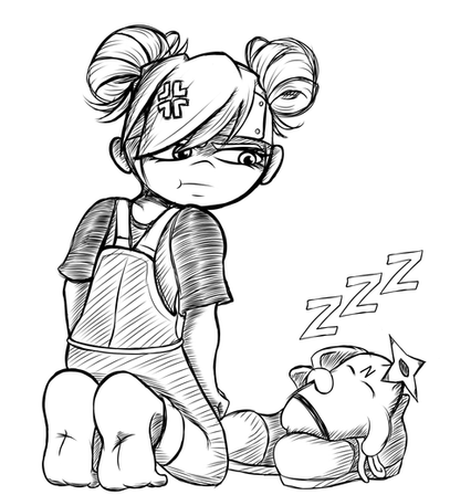 A lineart commission I got from .Poppy's sitting in her bed playing a video game, while Shurikino and Gumchi are playing one of their own. While she plays her games, they play with her feet! Sounds like a fair trade. Poppy doesn't seem to be minding this.