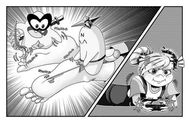 #feet #female #focused #foot #gaming #male #ninjala #oc #poppy #gumchi #shurikino #feet_play #ninjala_oc
